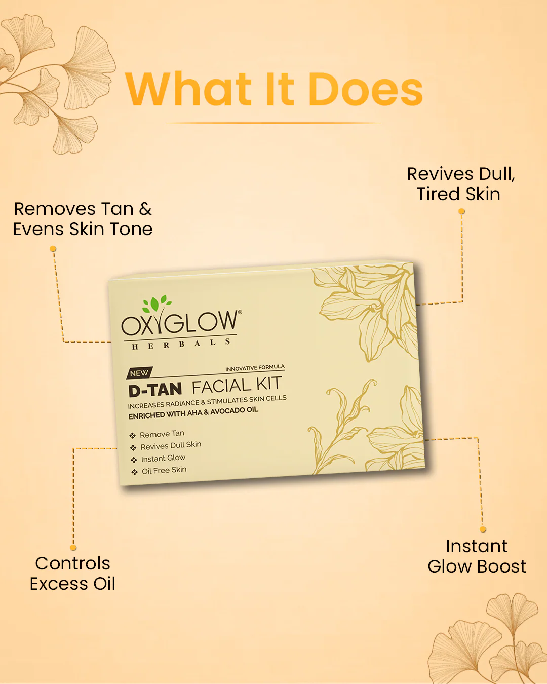 Say goodbye to stubborn sun tan and dullness with the OxyGlow Herbals D-Tan Facial Kit, one of the best de-tan facial kits for both men and women. Powered with Alpha Hydroxy Acids (AHA) and Avocado Oil, this 5-step facial system provides instant tan removal, visibly brighter skin, and a renewed glow in just one use.